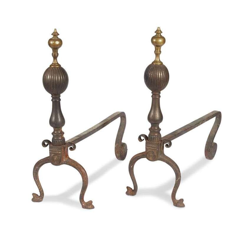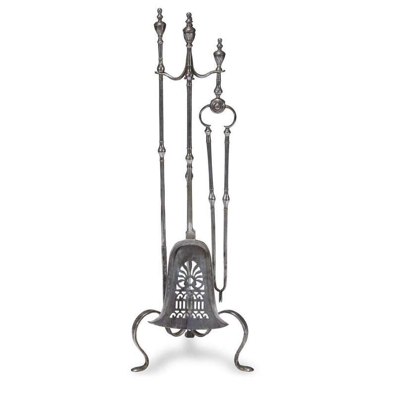 Comprising a pair of andirons and a set of steel fire tools. (6).
