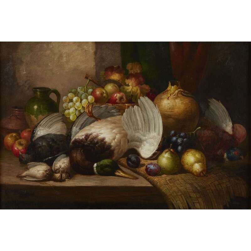 WILLIAM DUFFIELD (BRITISH, 1816–1863) STILL LIFE WITH DUCK AND FRUIT