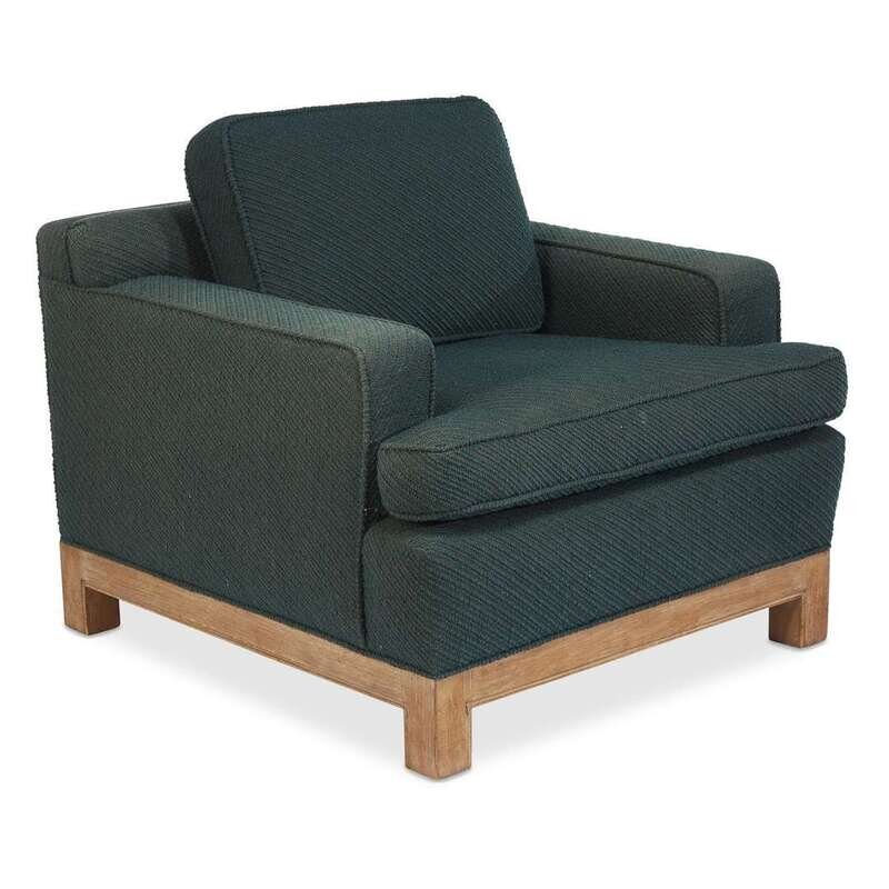 Two upholstered blond wood club chairs 20th century