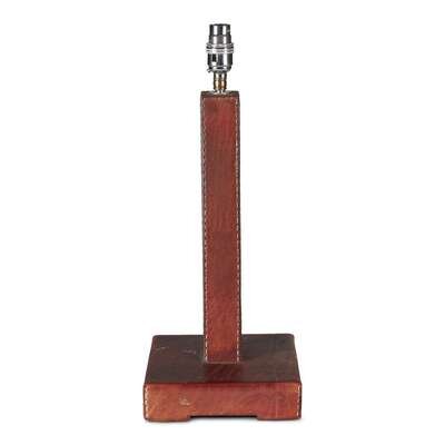 A stitched red leather table lamp In the manner of Jacques Adnet