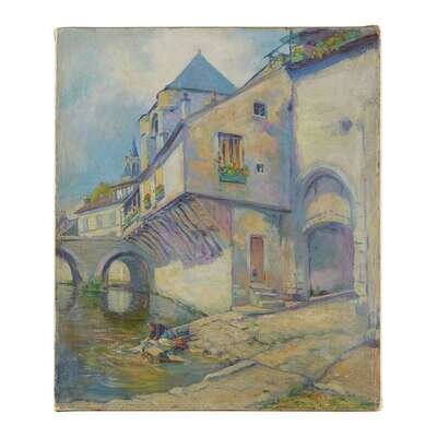 ELIZABETH FISHER WASHINGTON (AMERICAN 1871-1953) WOMAN WASHING CLOTHES
