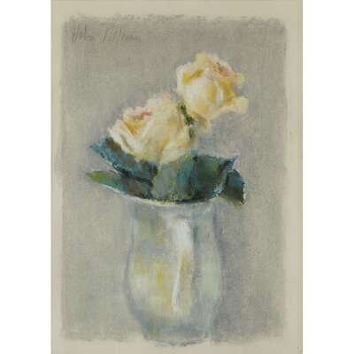 HOBSON PITTMAN (AMERICAN, 1900-1972) "TWO YELLOW ROSES IN PITCHER"