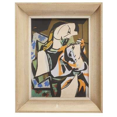 Signed and dated 1946 in pencil bottom right, mixed media on paperboard.