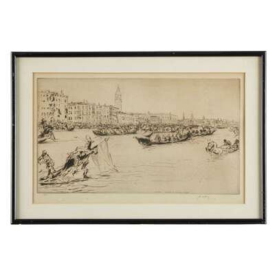 JAMES MCBEY (SCOTTISH, 1883–1959) "A REGATTA ON THE GRAND CANAL, VENICE"