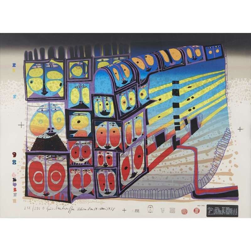 FRIEDENSREICH HUNDERTWASSER (AUSTRIAN, 1928–2000) "NACHTZUG (NIGHT TRAIN) VARIANT 5"