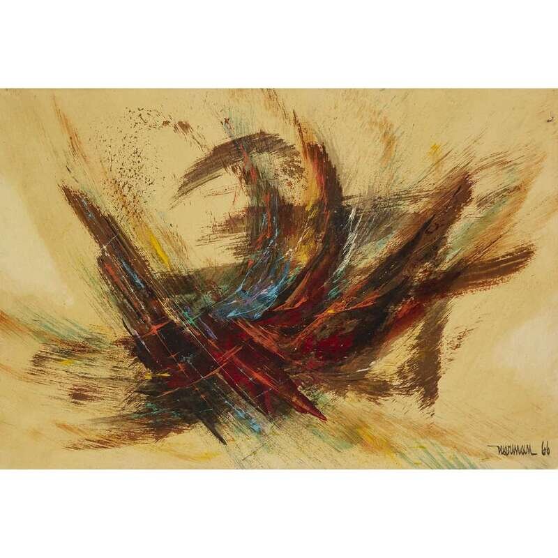 Signed and dated 66 bottom right, mixed media on paper laid down to masonite.