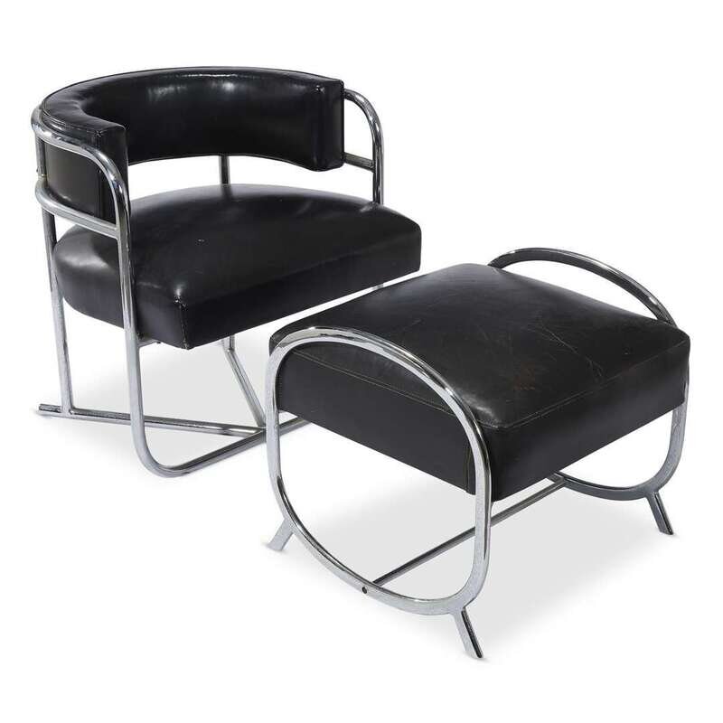 An Art Deco chromed tubular steel club chair and associated chromed metal stool first half 20th century