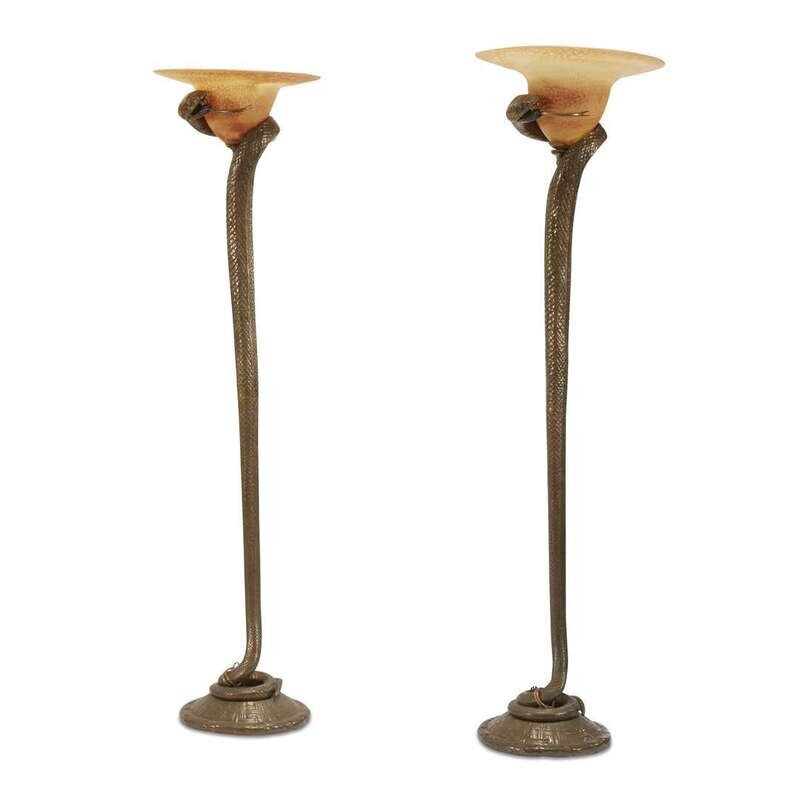 A pair of modern Cobra style floor lamps after a design by Edgar Brandt second half 20th century