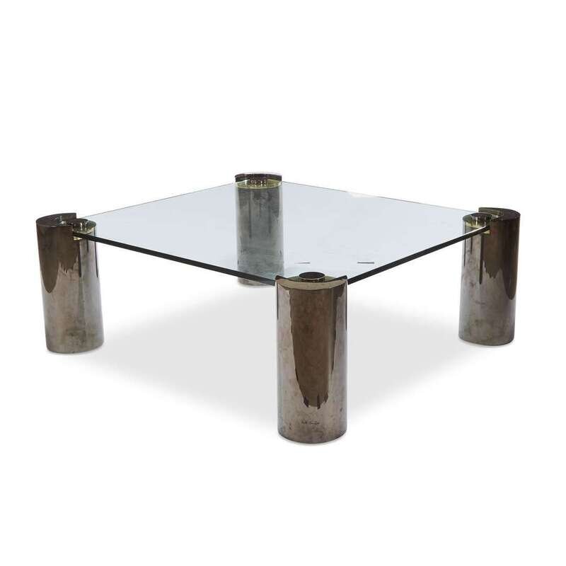 A Karl Springer glass, patinated brass and brass coffee table circa 1970s