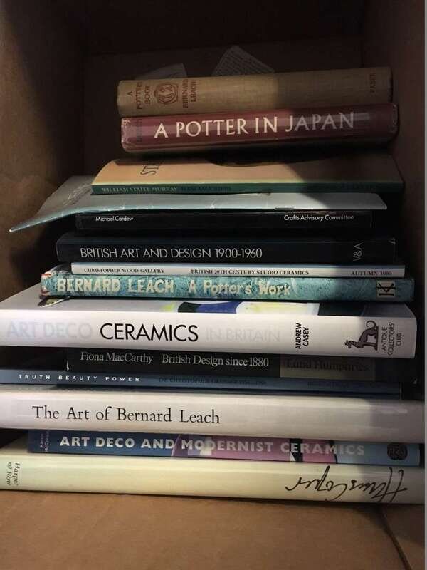 Incl. titles such as, Art Deco and Modernist Ceramics, Karen McCready, Thames and Hudson; The Art of Bernard Leach, Carol Hogben, Faber; Studio Pottery, Oliver Watson, Phaidon; Hans Coper, Tony Birks, Harper & Row; Dr. Christopher Dresser, 18134-1904, Historical Design; British Design since 1880, Fiona MacCarthy, Lund Humphries; Craft Pottery, Thomas Plowman, Shire; A Potter's Book, Bernard Leach, Faber; British Studio Ceramics in the 20th Century, Paul Rice, Christopher Gowing, Chilton; Michael Cardew, Crafts Advisory Committee; A Potter in Japan, Bernard Leach, Faber; Art Deco Ceramics in Britain, Andrew Casey, Antique Collectors' Club; A Potter's Work, Bernard Leach, Kodansha; British 20th Century Studio Ceramics, Christopher Wood Gallery; British Art and Design, 1900-1960, Victoria and Albert Museum; William Staite Murray, Malcolm Haslam, Crafts Council Cleveland; Lucie Rie/Hans Coper: Masterworks by Two British Potters, Metropolitan Museum of Art; Hamada Potter, Bernard Leach, Kodansha; Artist-Potters in England, Muriel Rose, Faber. Approximately 19 items.