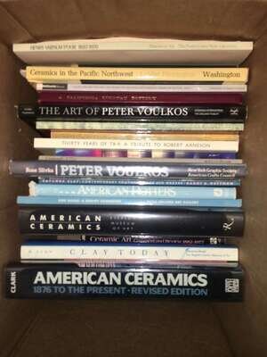 Incl. titles such as, American Ceramics, 1876 to the Present, Garth Clark, Abbeville; Clay Today, M. Lynn, Chronicle Books; Ceramic Art Comment and Review, 1882-1977, Garth Clark, Dutton; American Ceramics, The Collection of Everson Museum of Art, Barbara Perry, Rizzoli; Ron Nagle: A Survey Exhibition, 1958-1993,Mills College Art Gallery; American Potters, Garth Clark, Watson Guptill; Catawba Clay Contemporary Southern Face Jug Makers, Barry G. Huffman, Huffman; Ceramic Works, 1940-1990, F. Carlton Ball, Tacoma Art Museum; Peter Voulkos, Rose Slivka, New York Graphic Society; Crossroads of Clay, The Southern Alkaline-Glazed Stoneware Tradition, McKissick Museum; Tempest in a Teapot, The Ceramic Art of Peter Shire, Rizzoli; 30 Years of TB-9: A Tribute to Robert Arneson, John Natsoulas Gallery; Natzler Ceramics, Los Angeles County Museum of Art; Ceramic Sculpture: Six Artists, Richard Marshall and Suzanne Foley, Whitney Museum of Art; The Art of Peter Voulkos, Rose Slivka and Karen Tsujimoto, Kodansha; A California Country Pottery, Al Bolton; I made this jar . . . The Life and Works of the Enslaved African-American Potter, Dave, McKissick Museum; Ceramics in the Pacific Northwest, A History, LaMar Harrington, University of Washington; The Potter's Art in California, 1885 to 1955, Hazel V. Bray, Oakland Museum; American Potters Today, Garth Clark and Oliver Watson, Victoria and Albert Museum; A Century of Ceramics in the United States, 1878-1978, Garth Clark and Margie Hughto, Dutton; Henry Varnum Poor, 1887-1970, Penn State Museum of Art. Approximately 24 items.