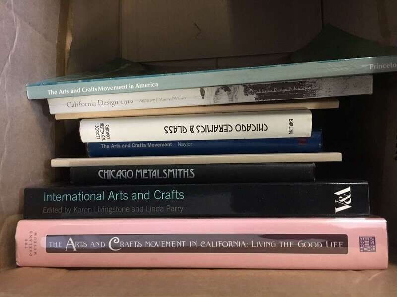 Incl. titles such as, The Arts and Crafts Movement in America 1876-1916, Robert Judosn Clark, Princeton; The Arts and Crafts Movement in California, Abbeville; Chicago Metal-Smiths, Sharon S. Darling, Chicago Historical Society; August Tiesselinck, a lifetime in metal, Isak Lindenauer; The Arts and Crafts Movement, Gillian Naylor, MIT Press; Chicago Ceramics and Glass, Sharon S. Darling, Chicago Historical Society; Californian Design 1910, Timothy J. Anderson, Eduorah M. Moore, and Robert W. Winter, California Design; The Arts & Crafts Studio of Dirk van Erp, San Francisco Craft & Folk Art Museum; International Arts and Crafts, Karen Livingstone, Linda Perry, Victoria and Albert Museum. Approximately 9 items.