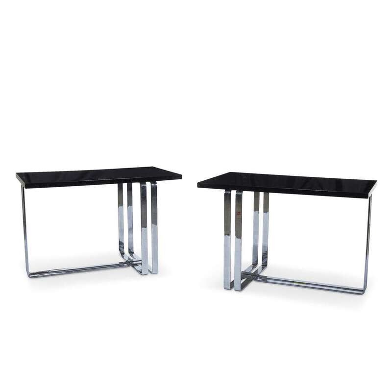 A pair of Art Moderne chromed metal and lacquered wood tables 20th century