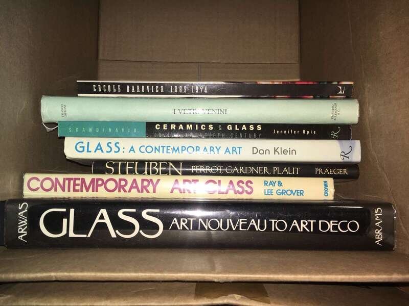 Incl. titles such as, I Vetri Venini, Franco Deboni, Umberto Allemandi; Ercole Barovier 1889-1974, Vetraio Muranese, Marsilio Editori; Contemporary Art Glass, Ray and Lee Grover, Crown; Steuben, Seventy Years of American Glassmaking, Paul N. Perrot, Paul V. Gardner, James S. Plaut, Praeger; Glass, Art Nouveau to Art Deco, Victor Arwas, Abrams; Glass, A Contemporary Art, Dan Klein, Rizzoli; Scandinavia, Ceramics & Glass in the Twentieth Century, Jennifer Opie, Rizzoli. Approximately 7 items.