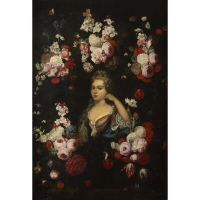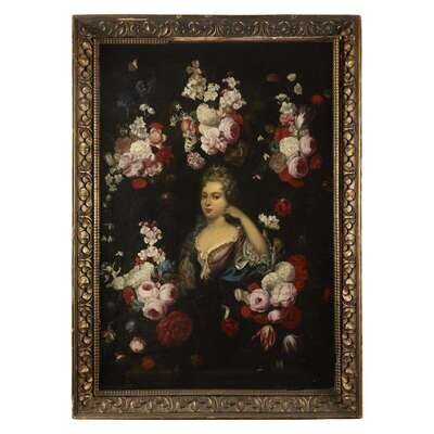 CIRCLE OF GASPAR PIETER VERBRUGGEN THE YOUNGER (FLEMISH 1664-1730) A CARTOUCHE OF FLOWERS WITH DIANA