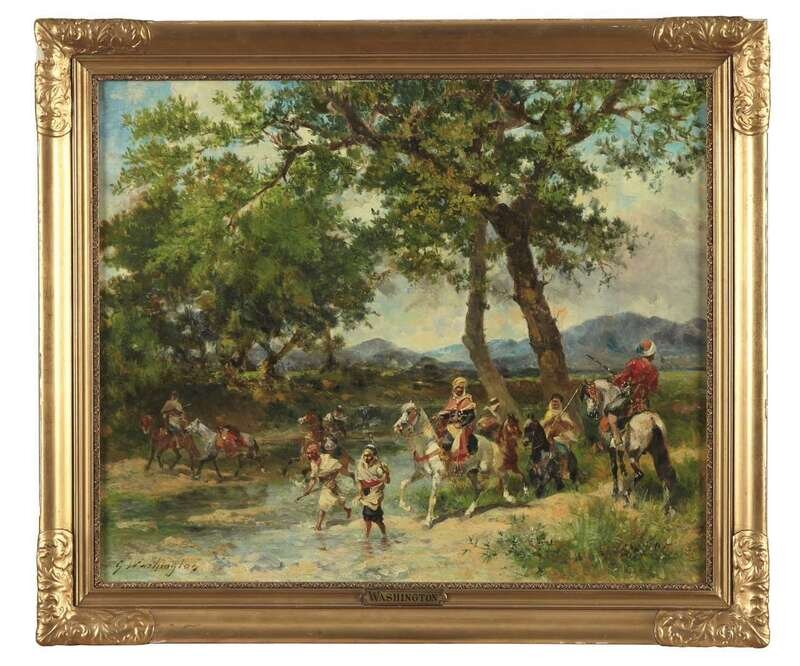 GEORGES WASHINGTON (FRENCH 1827-1910) ARAB HORSEMEN CROSSING A STREAM