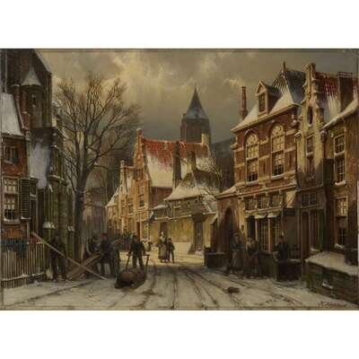 WILLEM KOEKKOEK (DUTCH 1839-1895) TOWN IN WINTER