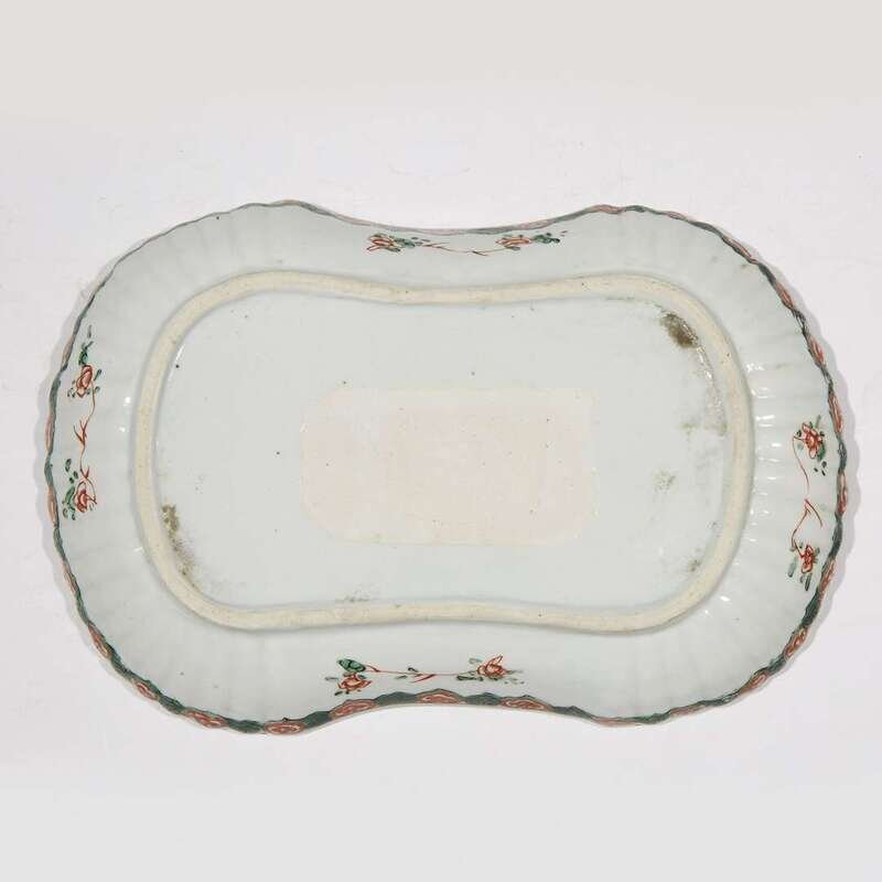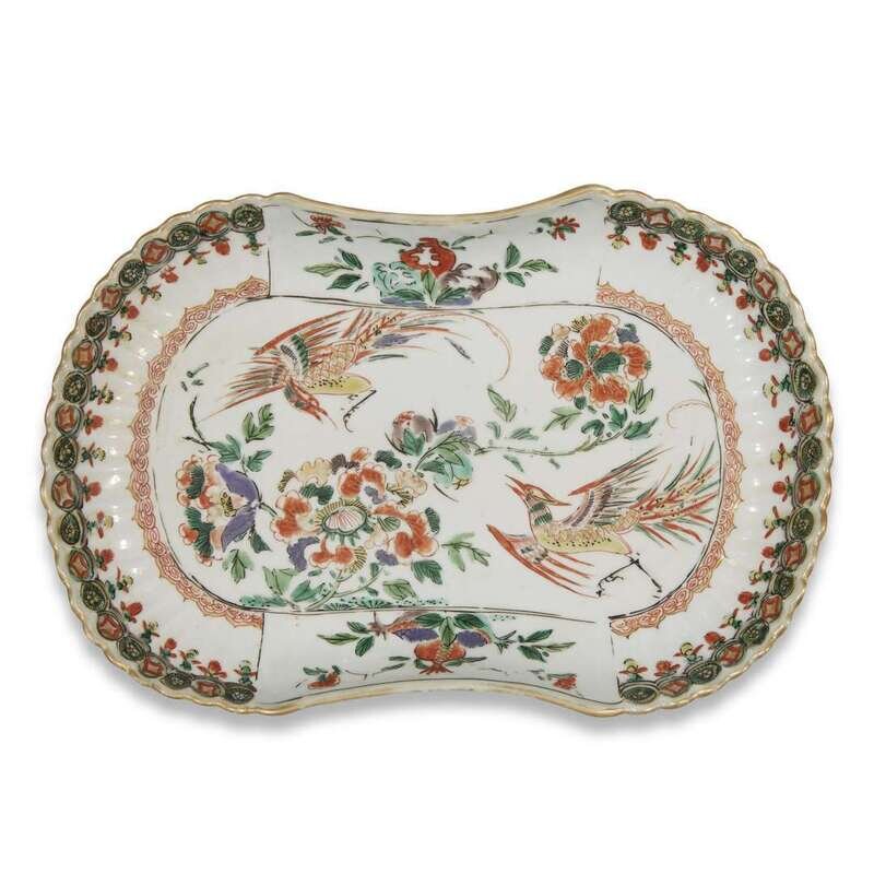 An unusual Chinese porcelain famille verte-decorated ingot-form dish Kangxi period