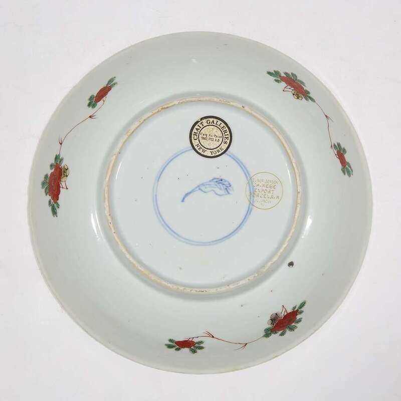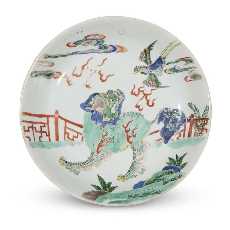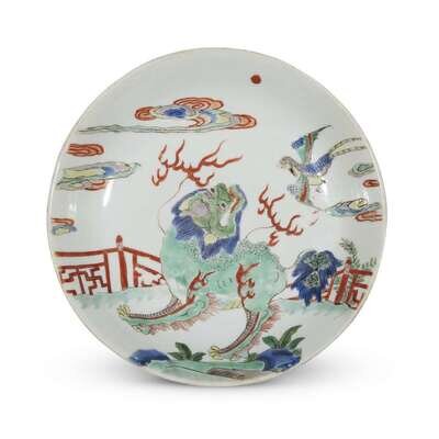Pair of Chinese famille verte-decorated porcelain "Qilin" dishes Kangxi period