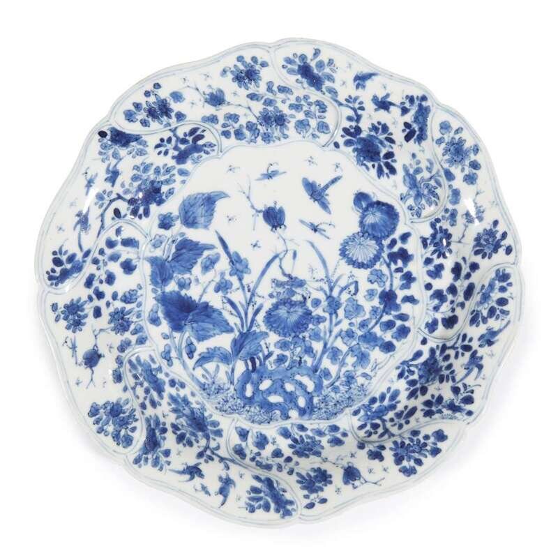A Chinese blue and white porcelain petal-lobed dish Kangxi period