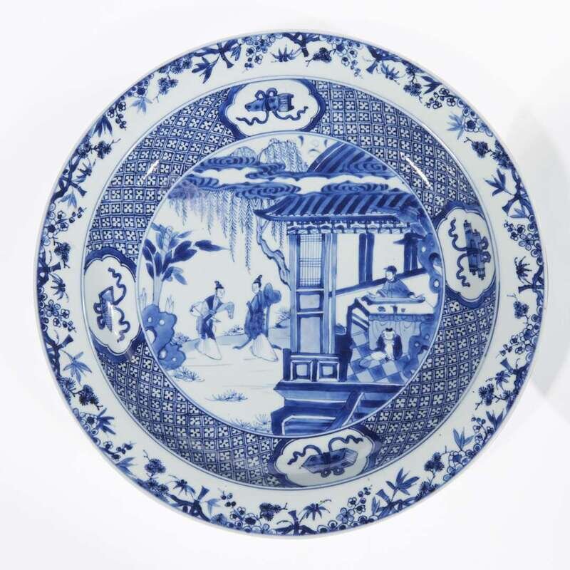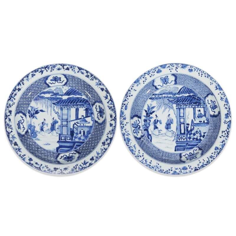 A pair of Chinese export porcelain blue and white chargers Kangxi period