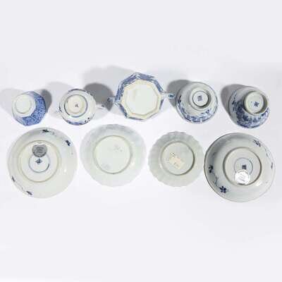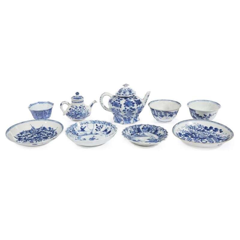 A group of nine Chinese blue and white porcelain tea wares Kangxi period