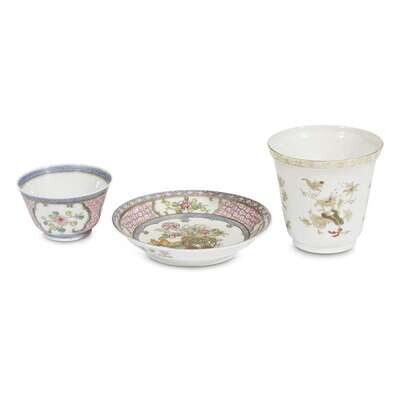 A group of three finely-potted and decorated Chinese famille rose porcelain teawares 18th century, Yongzheng/Qianlong period