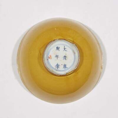 A Chinese yellow-glazed porcelain bowl Kangxi mark, and probably of the period