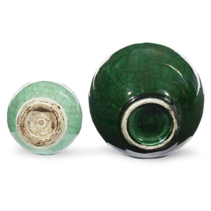 A Chinese green-glazed porcelain small vase and an ovoid jar Qing dynasty, the vase probably 18th century