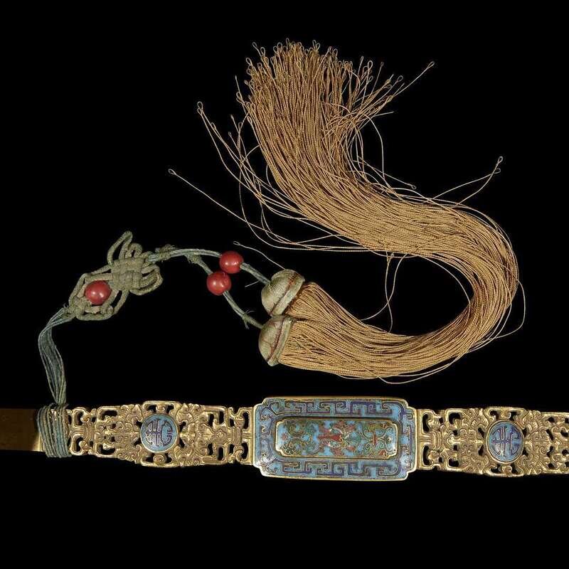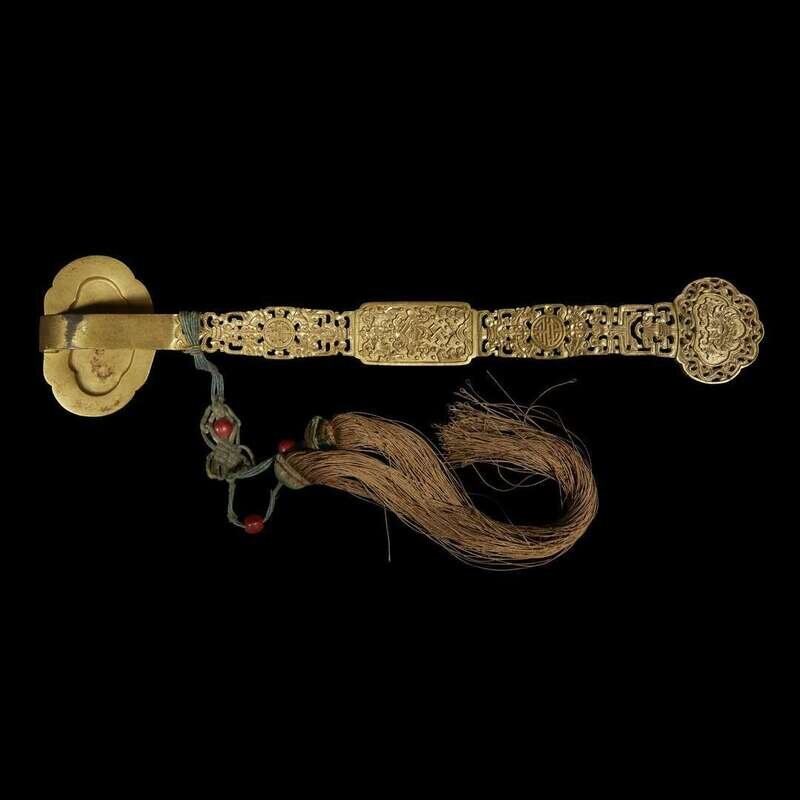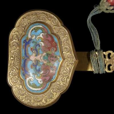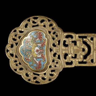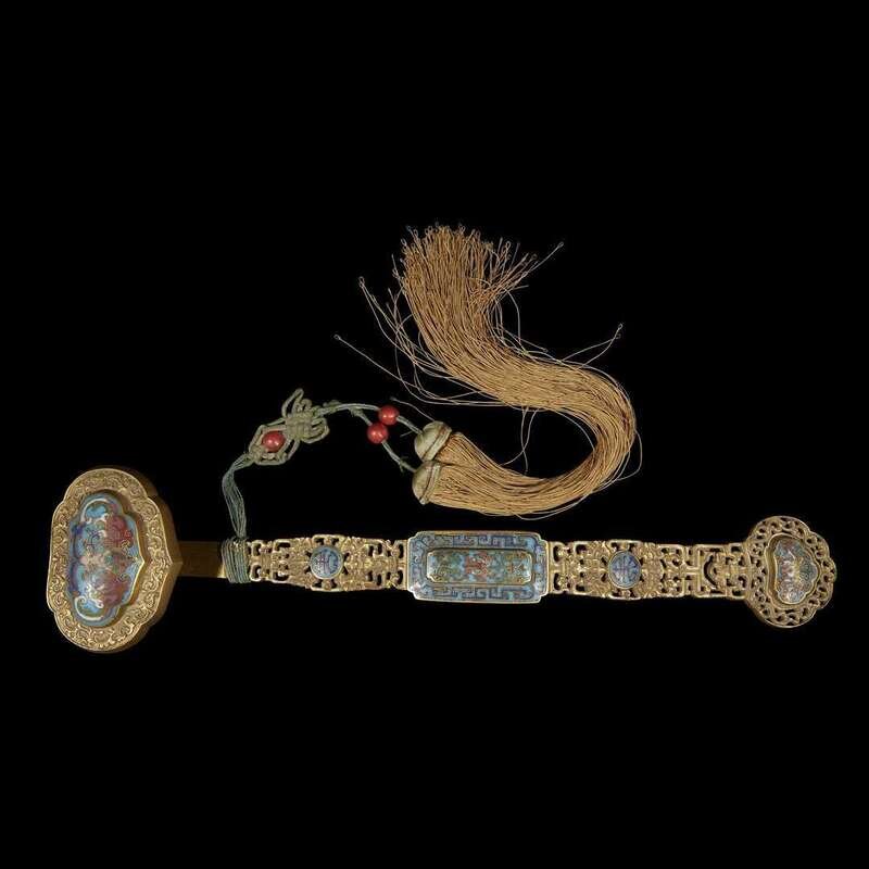A Chinese gilt bronze and cloisonne ruyi scepter Qianlong period