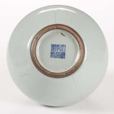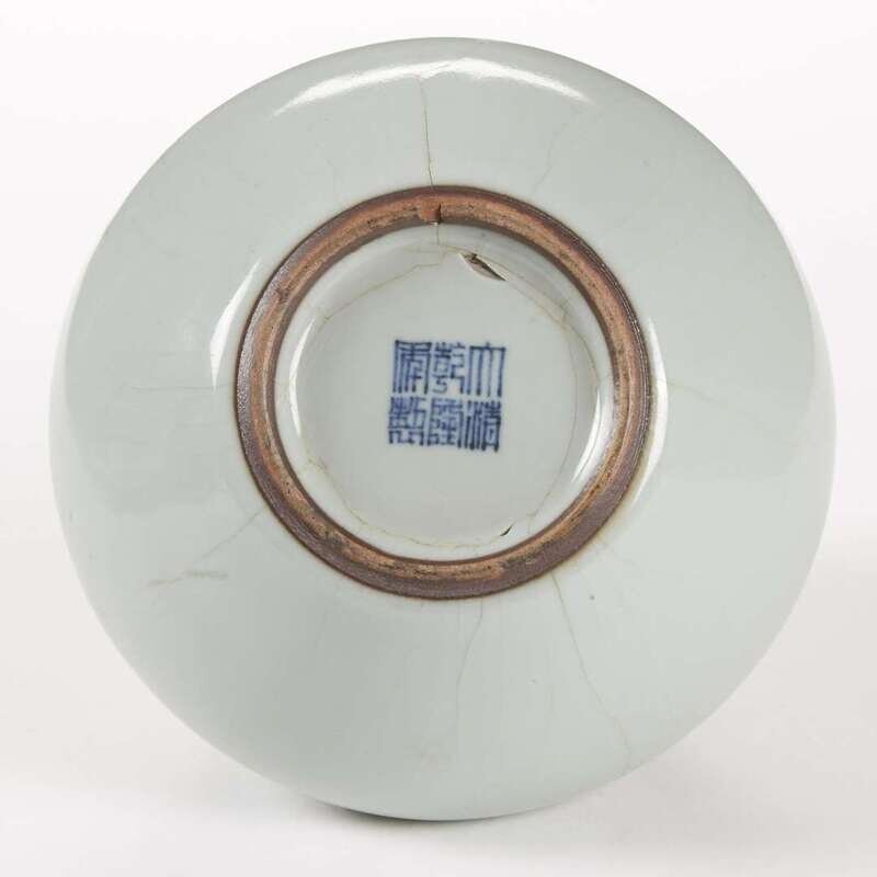 A Chinese celadon-glazed five-spouted vase Qianlong six-character seal mark and of the period
