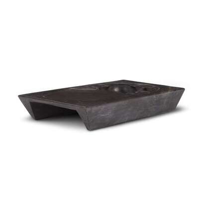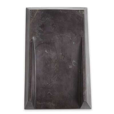 The rectangular stone with shaped well, circular grinding surface, of dark chocolate brown with olive inclusions, sloped underside possibly incised Wang Fu Zhi .
