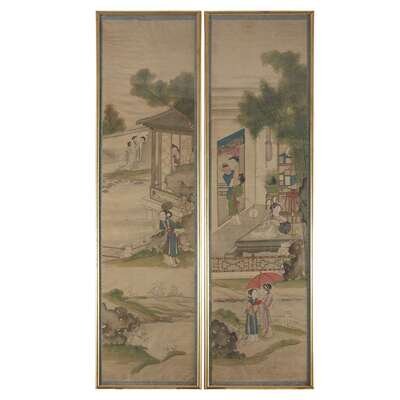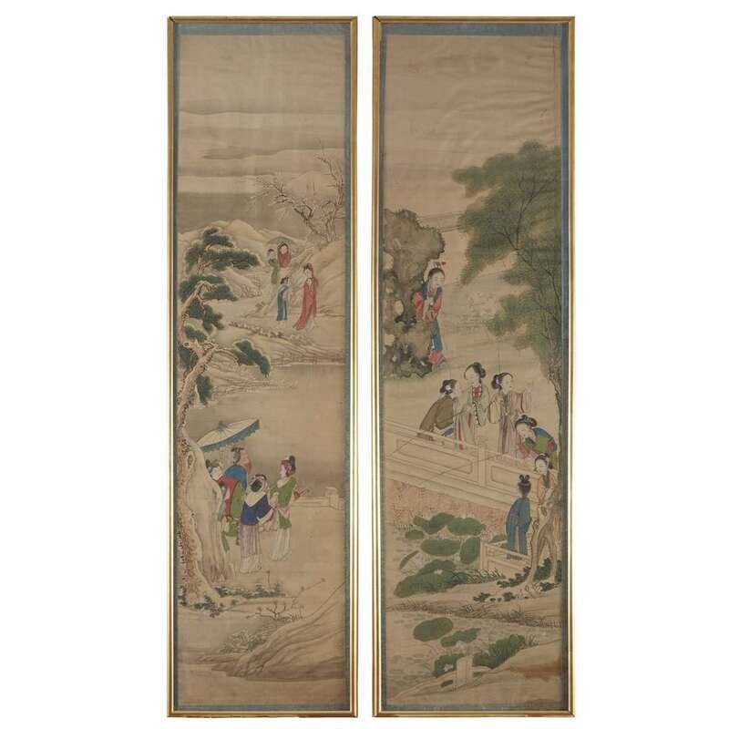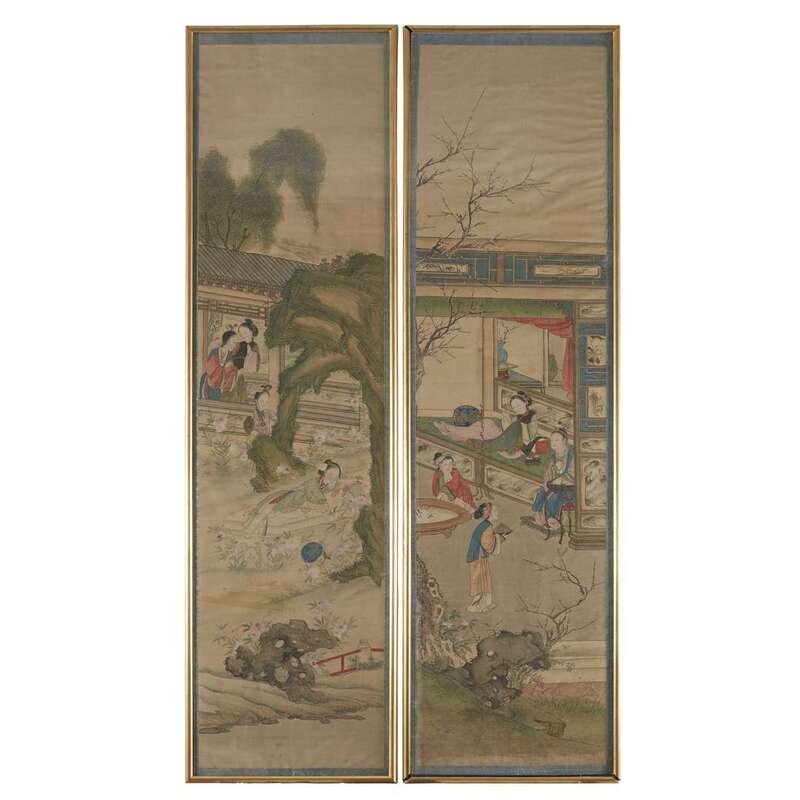 Depicted in garden and pavilion landscapes at various times of year Ink and color on silk; later framed, matted, and glazed.