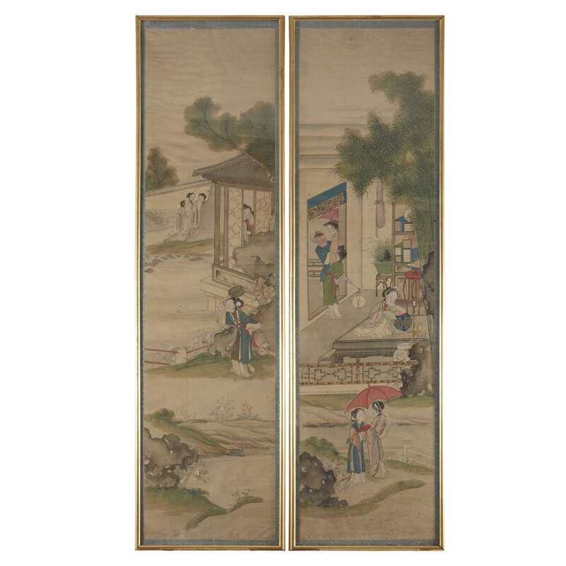 A set of six Chinese screen panels depicting meiren at various pursuits