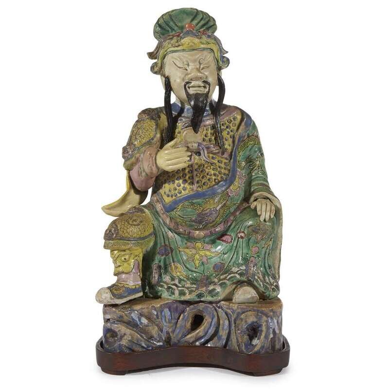 A Chinese enameled porcelain figure of Guandi Qing dynasty, late 18th/first half 19th century