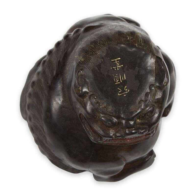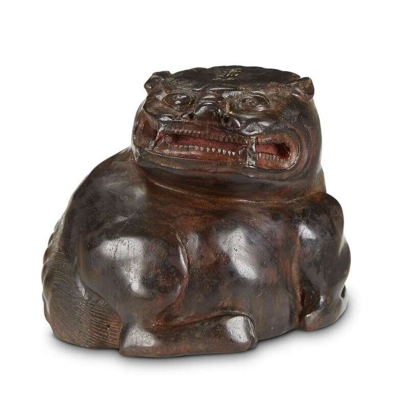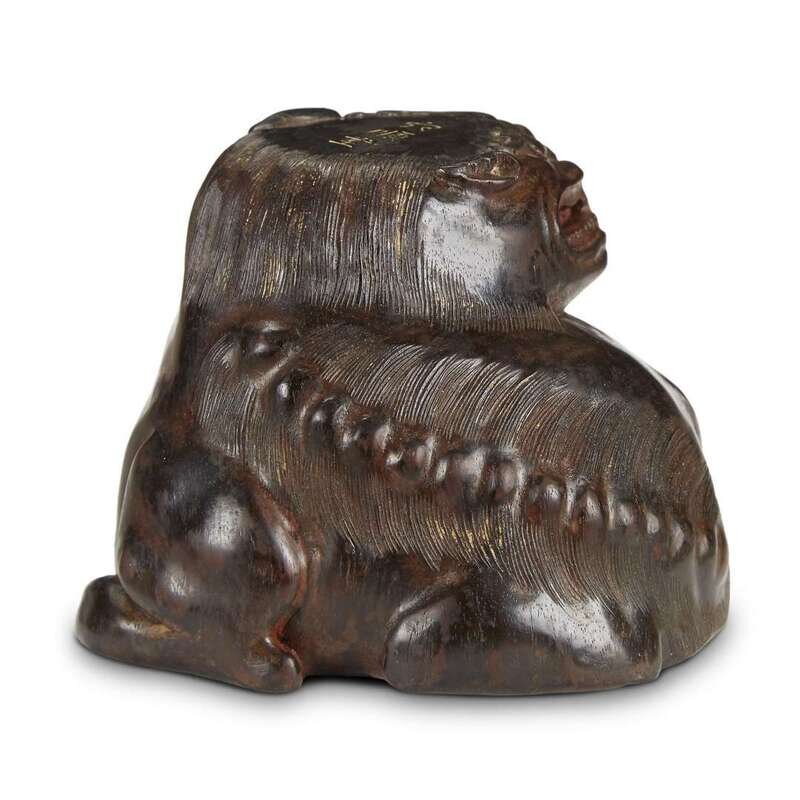 In the form of a fierce seated lion, the top incised Xue(?) Shun Tang.