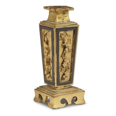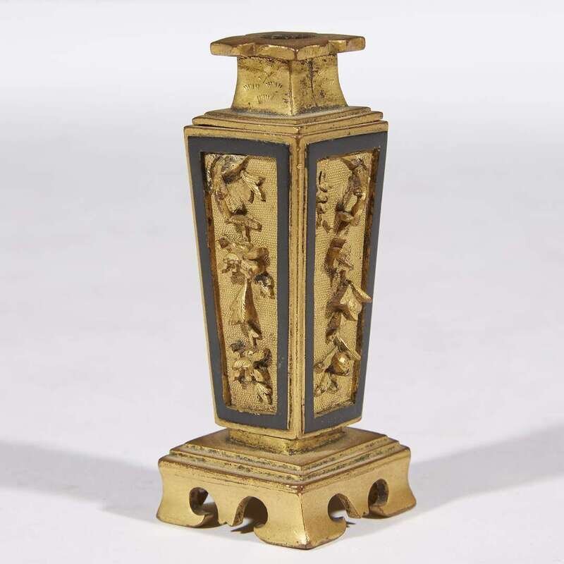A Chinese gilt and patinated copper alloy miniature incense tool vase 18th century