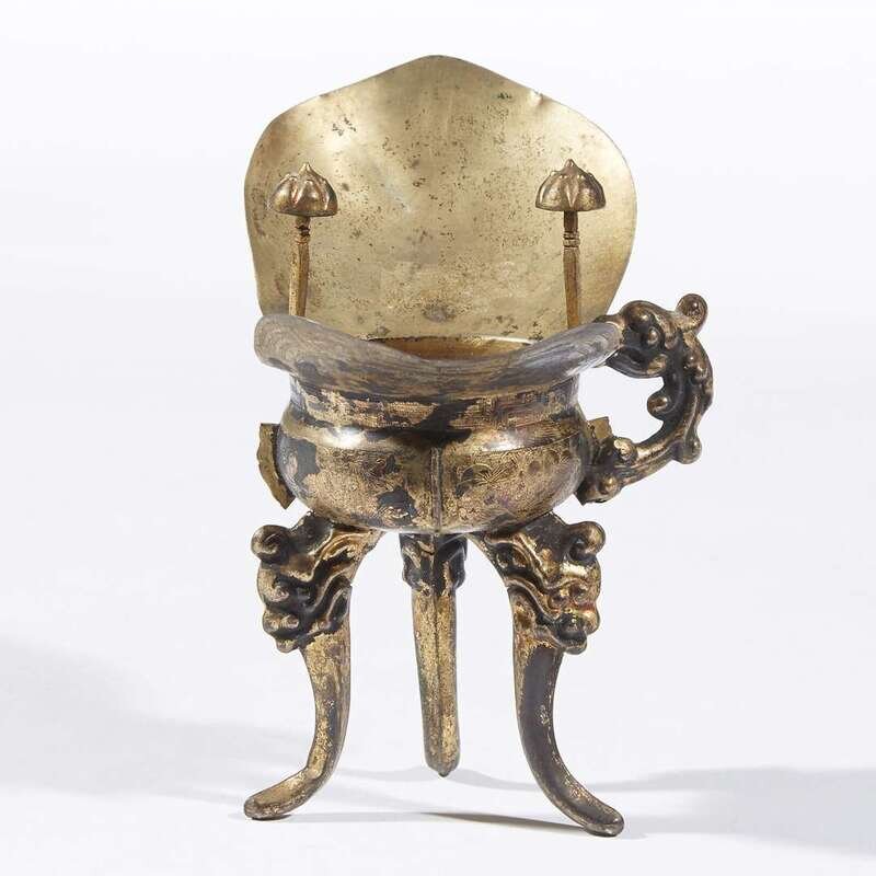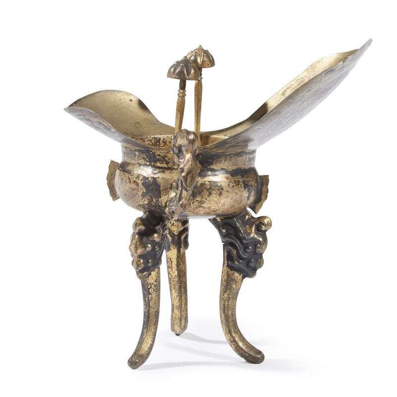 A Chinese silver-gilt tripod libation cup, jue 19th century