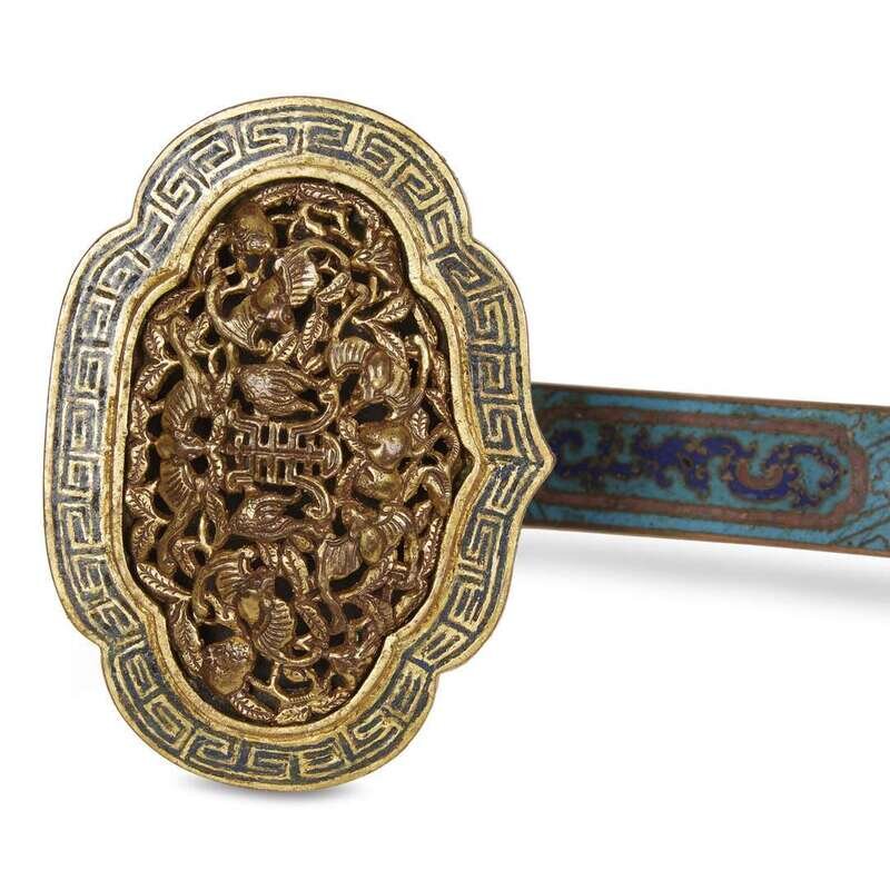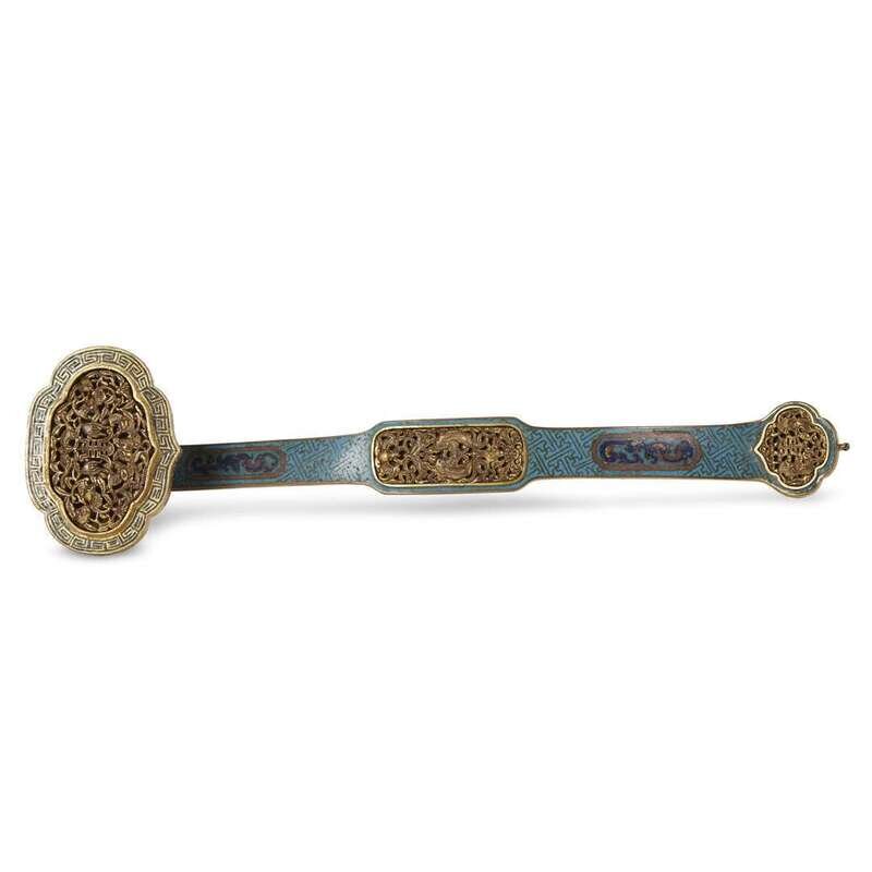 A Chinese parcel-gilt cloisonné ruyi sceptre Qianlong period
