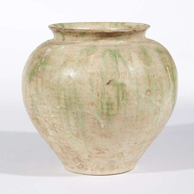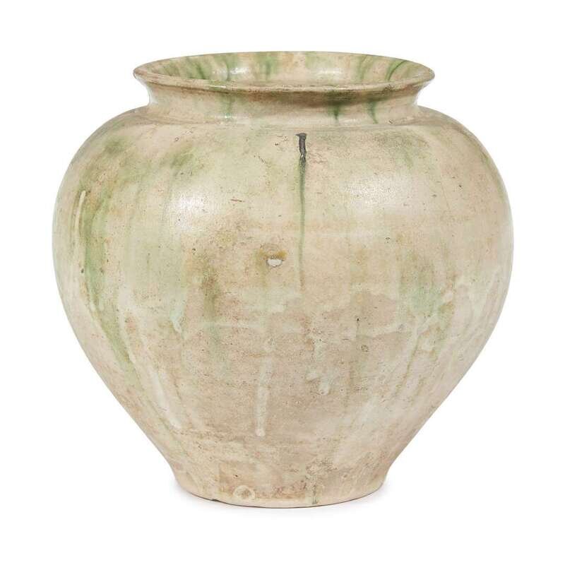 A Chinese green-splashed straw-glazed pottery vase probably Tang dynasty