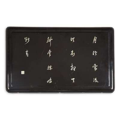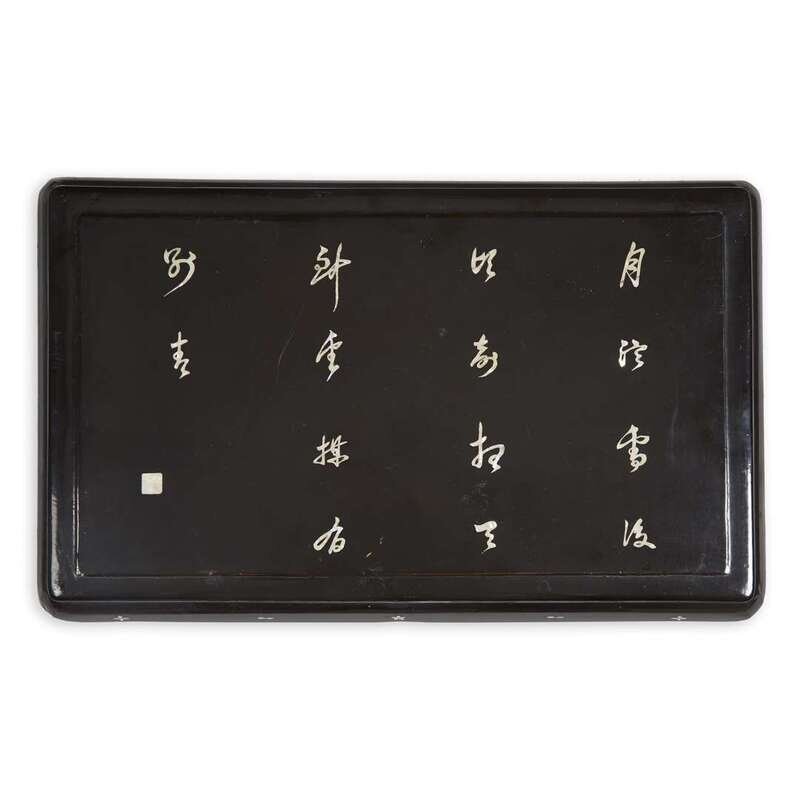 A mother of pearl calligraphy-inlaid black lacquer stand