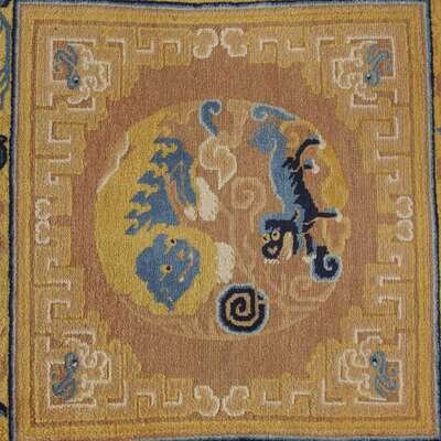 A Chinese "Tashi Xiaoshi" double mat, Beijing, and a Chinese saddle blanket circa 1900