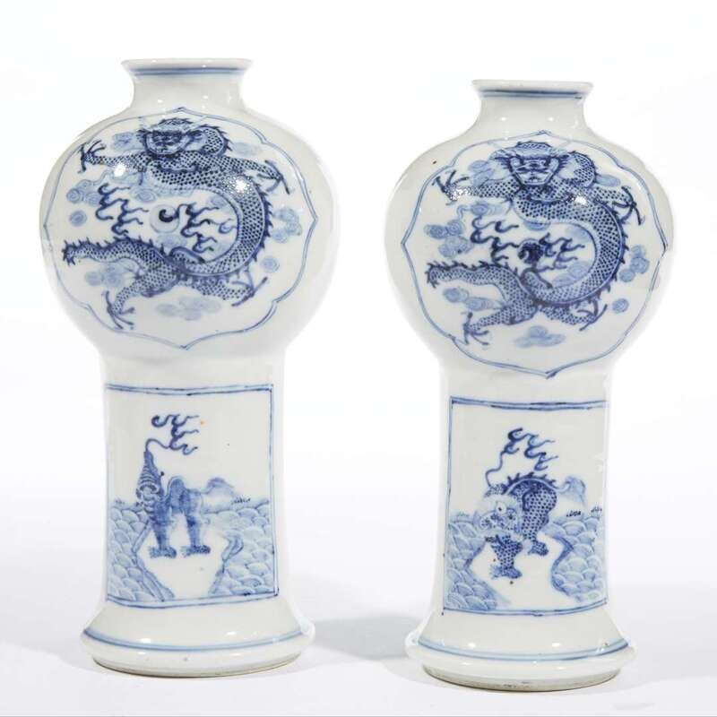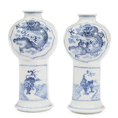 A pair of blue and white porcelain "Dragon and Qilin" vases late 19th century