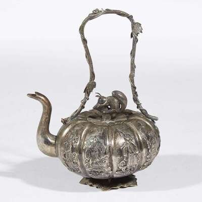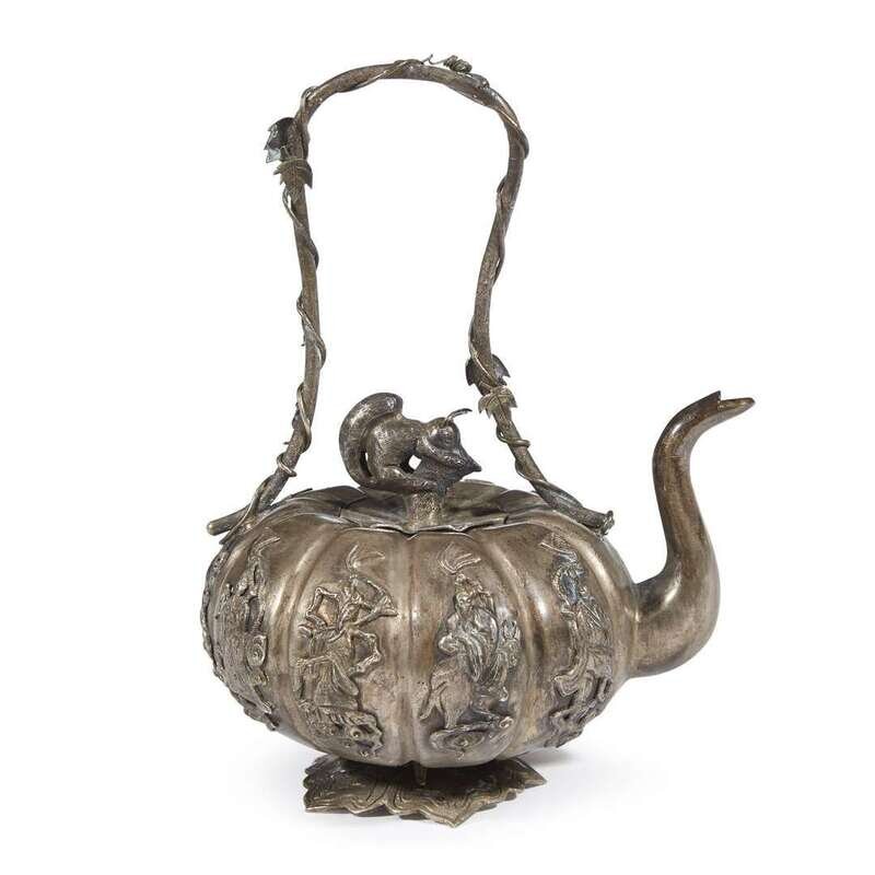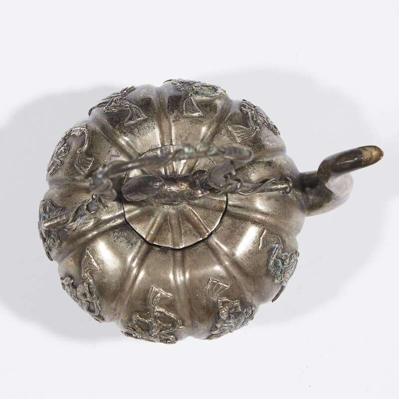 A small Chinese silver repousse wine pot Qing dynasty, 19th century