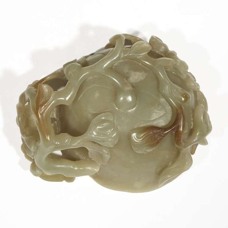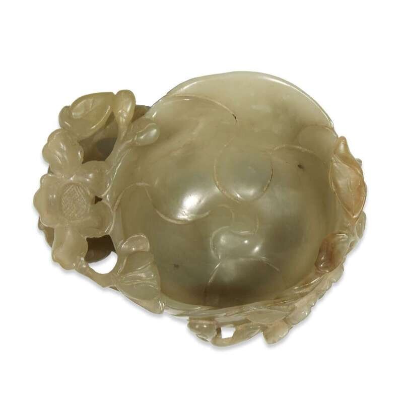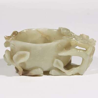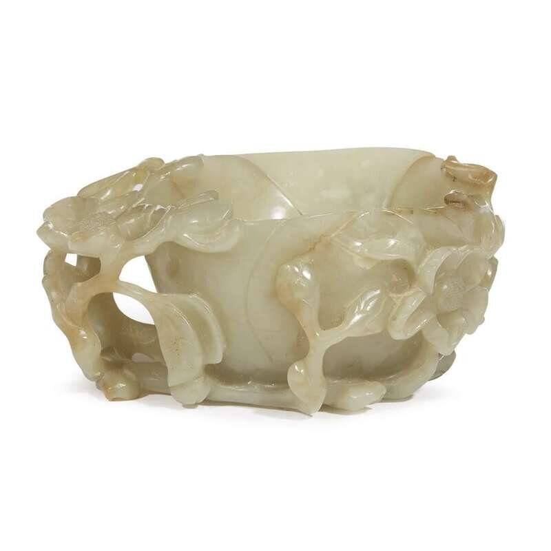 A Chinese celadon jade carved "Blossom" cup 18th/19th century or earlier