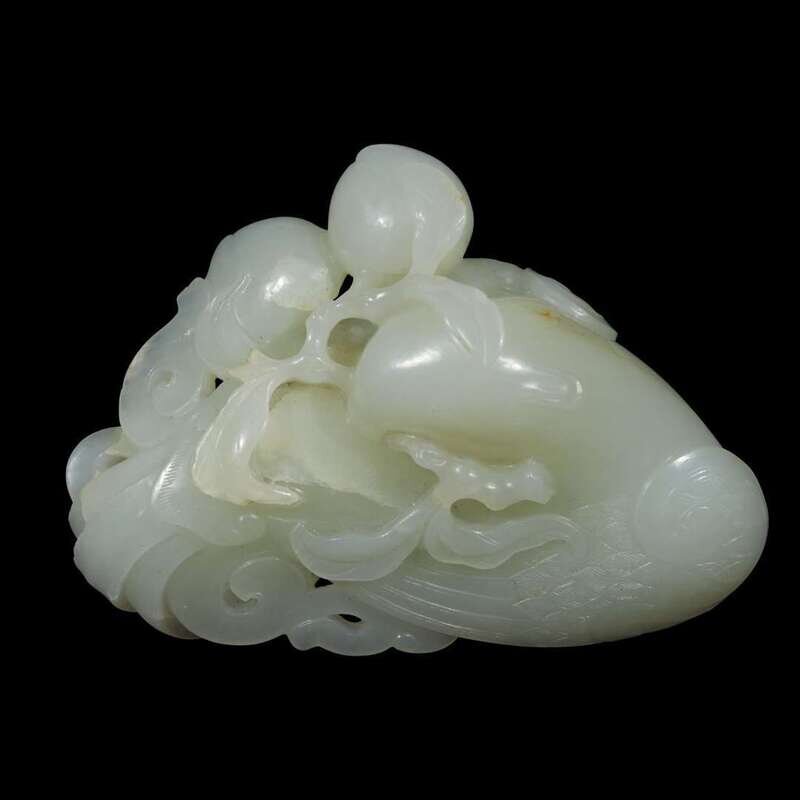 A Chinese carved white jade "Phoenix and Peach" Qing dynasty, Qianlong period