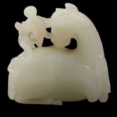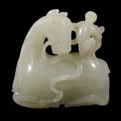 A Chinese carved white jade "Horse and Monkey" group Qing dynasty, 18th/early 19th century