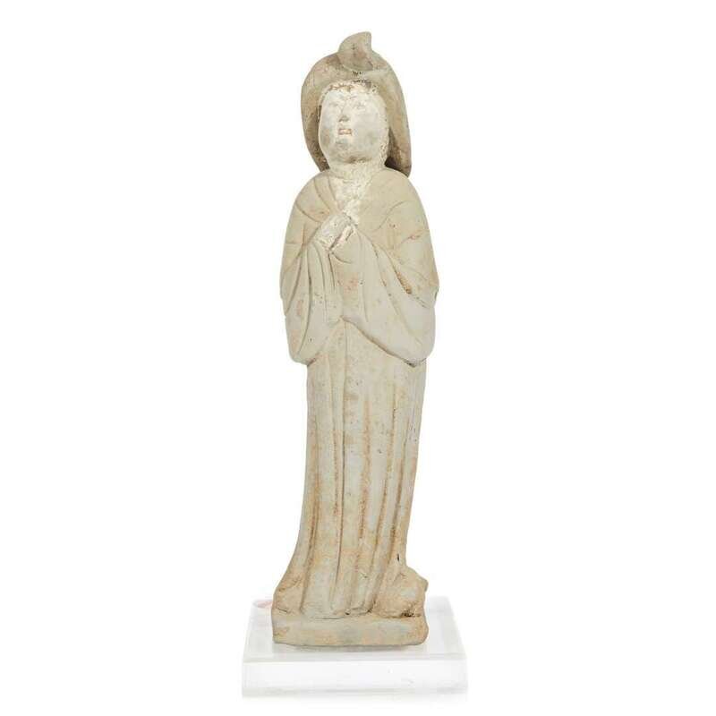 A Chinese painted grey pottery figure of a court lady Tang dynasty, first half 8th century