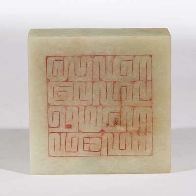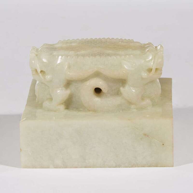 A Chinese pale celadon jade "Double-Dragon" seal the jade 19th century