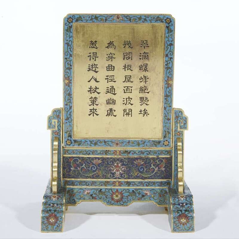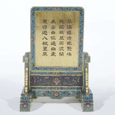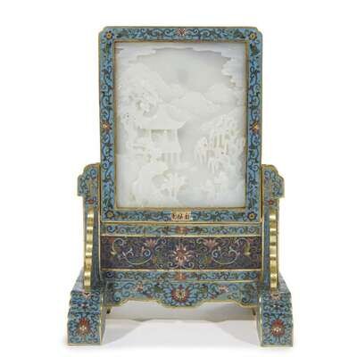 Chinese white jade and cloisonné table screen 20th century in 18th century style